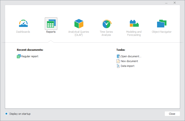 After executing one of the operations, the interface of the selected Foresight Analytics Platform tool or object navigator opens.