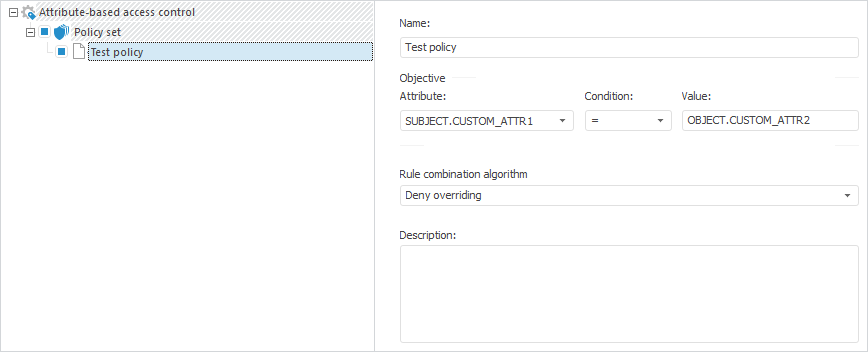 After executing the example the policy with the specified objective is added to the first policies set. The attribute-based access control structure will look as follows: