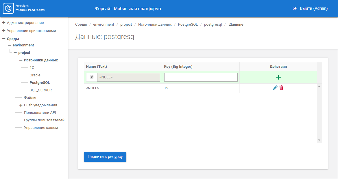 Click the Go to Resource button to go to the mode of editing PostgreSQL resource parameters.