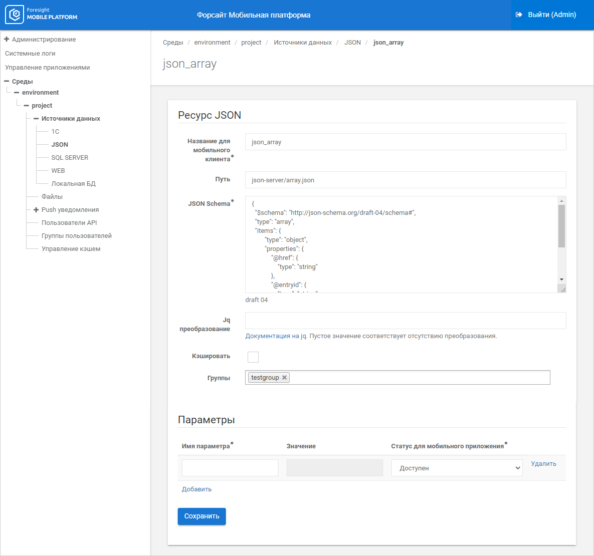 NOTE. Parameter data type in the mobile platform database, source data type in the data source, and parameter name cannot be changed.