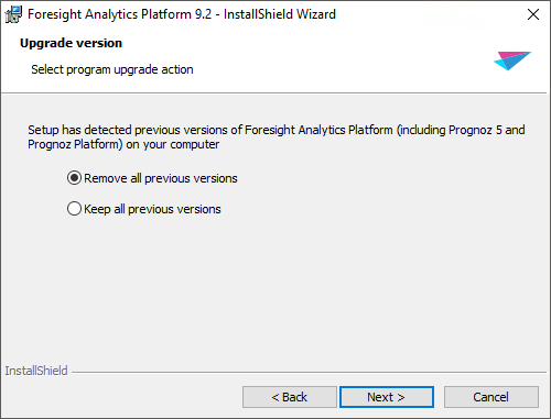 1. If earlier versions of Prognoz Platform or Foresight Analytics Platform are installed on the workstation, the following page opens: