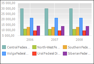 On the left chart all series are displayed, on the right chart the Eastern Federal Region series was excluded: