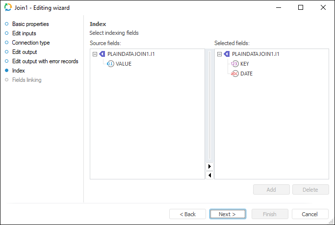 The Join transformer is an object used to merge data; before the data is merged, it is checked for correspondence to specified conditions. Using this transformer, it is possible to get in the resulting set the records, which values in one of link fields match, or all records of one provider are supplemented with values from other fields if values of these records match by the key fields.