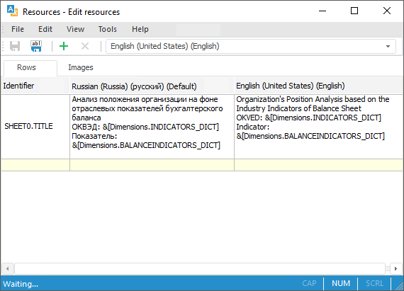 The express report title can support several user interface languages, for example, Russian and English. Such titles are named multilingual.