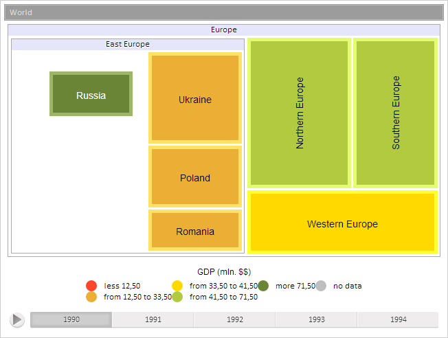 To execute this example, the page must contain the TreeMap component named treeMap (see Example of Creating the TreeMap Component). Rebuild the item, setting new target position and size values for this item, calculate animation step and then update values of item size and position: