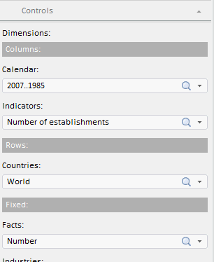 Before executing this example the Countries dimension with the 1646 key is placed in rows: