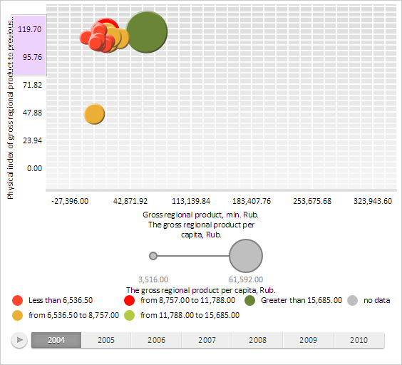 To execute the example, the HTML page must contain the BubbleChart component named bubbleChart (see Example of Creating the BubbleChart Component). Create a new selection frame with other background color and add it to bubble chart. Set a handler for mouse cursor move event for bubble chart selection frame and start rendering of selection frame: