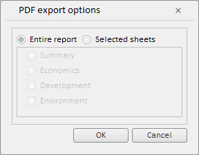 Components PdfExportDialog represented by the dialog box to export the report to the *.pdf format.