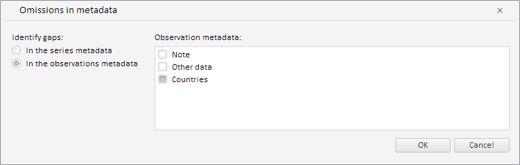 After executing the example the wizard detects missing data that corresponds to the Countries observation attribute: