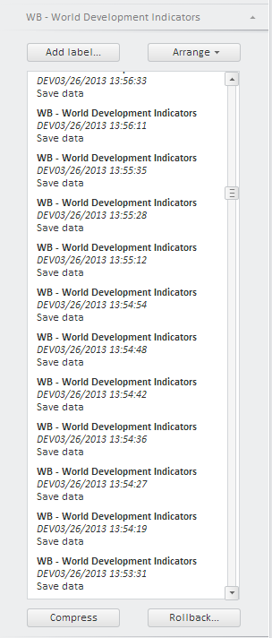 | RequestMetadata | The RequestMetadata event occurs on metadata request for the Revisions panel on the workbook properties panel. |