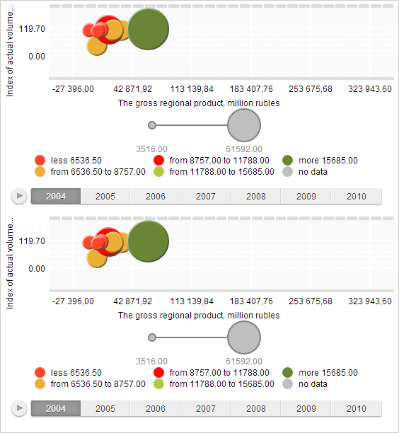 As a result height of current bubble chart is changed and new bubble chart is added. Data of bubble chart is synchronized:
