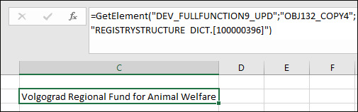 As a result, the cube dimension element is added to the selected cell on the workbook sheet:
