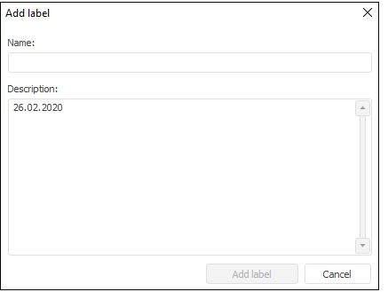 The following information is displayed for each revision and label: name, creator's name and description. For example: