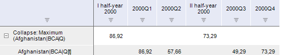 After selecting the output frequency in the workbook based on each selected series the calculated series with a name of the Collapse <Aggregation_Type>(<Series_Name>) type is created, containing the calculation results. For example: