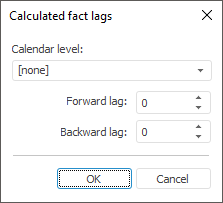 To specify lags, click the Specify Lags button. The Calculated Fact Lags dialog box opens: