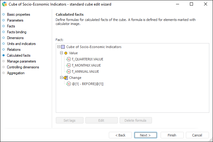 After any of these operations a dialog box opens, where the user can edit calculated fact parameters:
