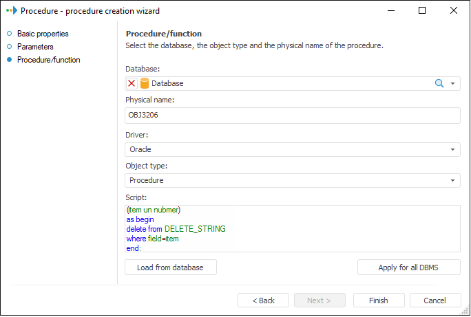 NOTE. Creating of procedures and functions is not available in SQLite DBMS because such object type is missing in this DBMS.