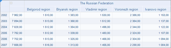 Data area title may have several levels of elements hierarchy. Additional columns for parent elements are added at such arrangement.