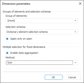 The main tasks on working with dimension are setting up dimension layout and setting up dimension selection.