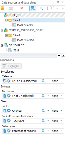 NOTE. The Data Sources and Data Slices panel is outdated and is used for compatibility with previous versions of Prognoz Platform programming language.