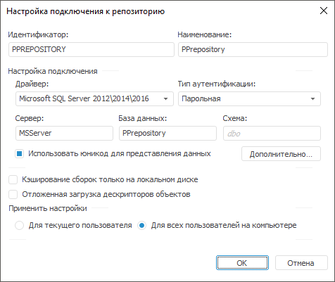 Для открытия окна «Настройка подключения к репозиторию»