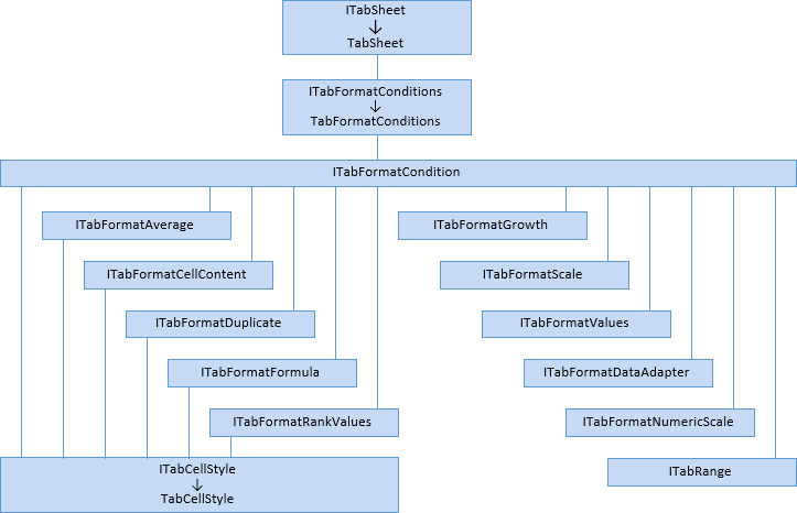 Интерфейс ITabFormatConditions имеет следующую иерархию:
