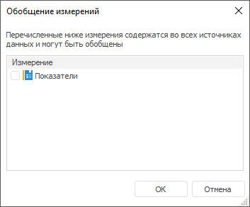 Изначально при настройке отображения данных из нескольких источников отметка в общих измерениях и отметка в частных измерениях из первого источника соответствует отметке, настроенной в используемых источниках. Отметка в частных измерениях второго и последующих источников соответствует отметке из сохранённых представлений используемых источников.