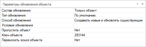 Если в дереве объектов выделено несколько объектов, то на панели «Параметры обновления объекта» отображаются только общие параметры.