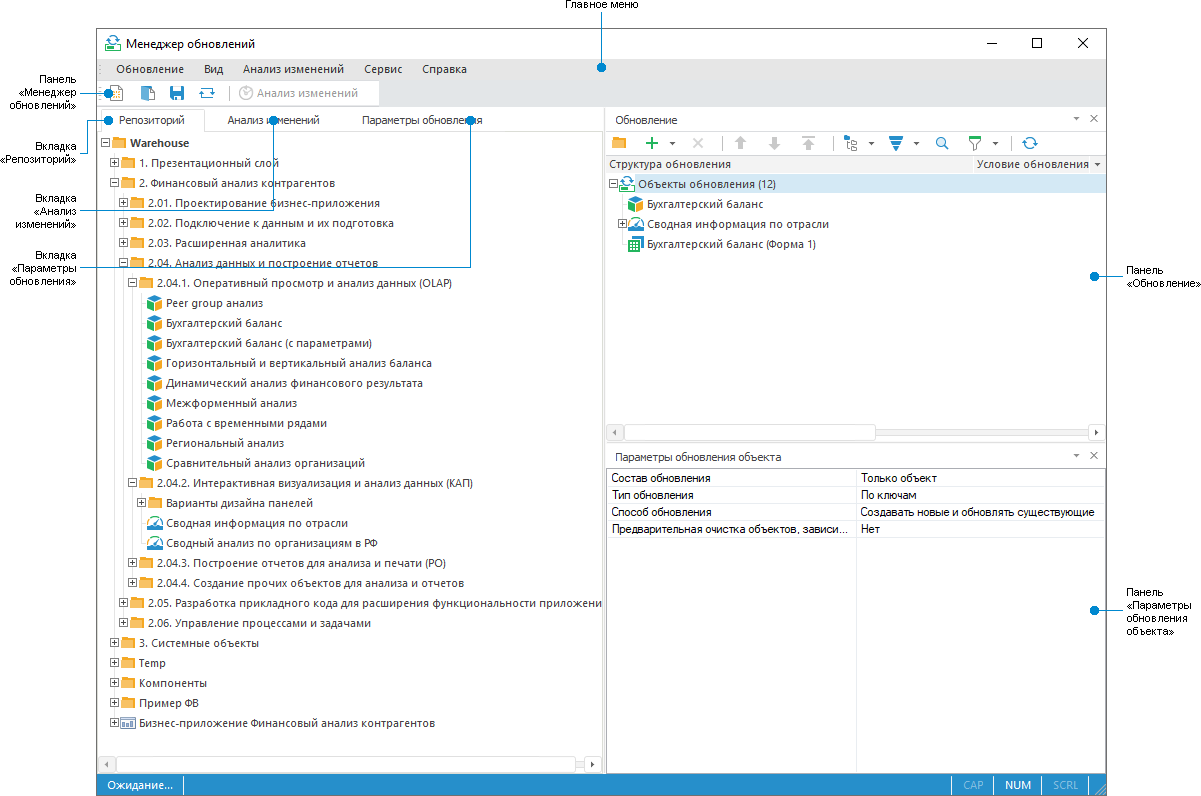 Функциональность менеджера обновлений в настольном и веб-приложении