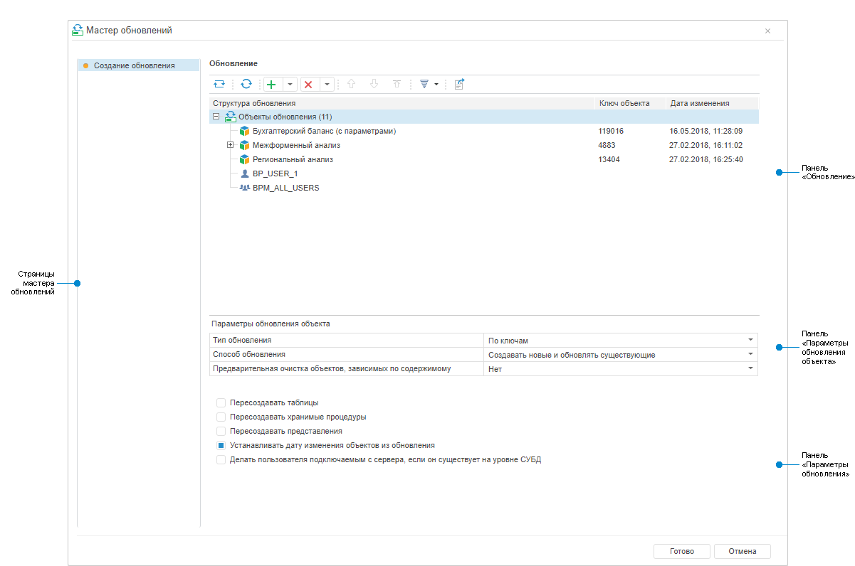 Для начала работы с менеджером обновлений создайте новое или откройте готовое обновление:
