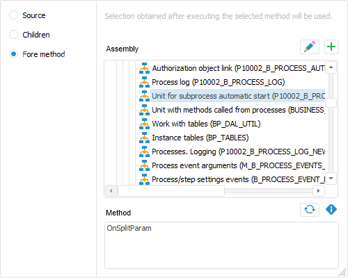 Fore Method. Subprocesses are started by elements obtained after Fore method execution. For Fore method determine assembly and method.