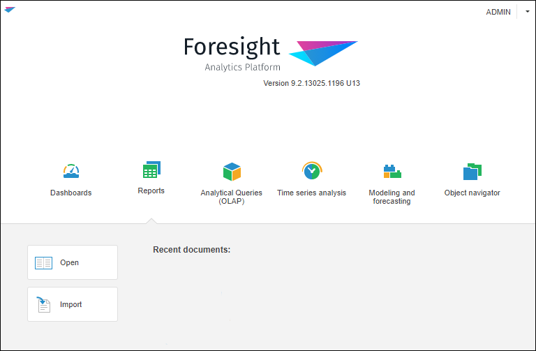 To start working, start Foresight Analytics Platform: