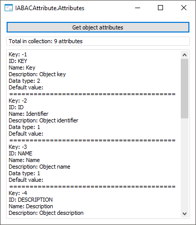 "Total in collection: " + ABACAttribute.Attributes.Count.ToString + " attributes");