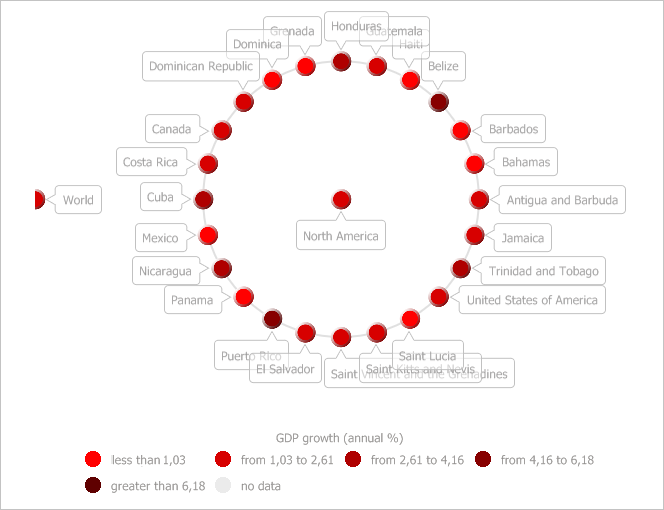 After executing the example, bubbles of the selected bubble tree are filled with different shades of red: