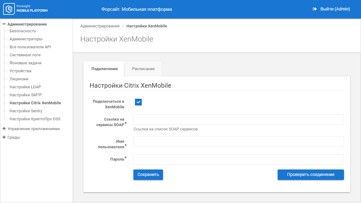 After this the synchronization schedule is set to load a list of user mobile devices between Citrix XenMobile and the platform.