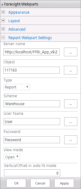 The third step of integration of Foresight Analytics Platform with Microsoft SharePoint is adding a web part to the Microsoft SharePoint web page with a Foresight Analytics Platform report.