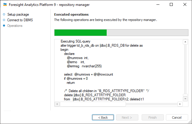 1. Installation Package File. To create a new repository, the path to the *.rm4 file that contains executable scripts is selected automatically. This file is included in the standard installation package and is located at S\Rm\current.rm4 path, where S is a path to the folder with installed Foresight Analytics Platform installation folder.