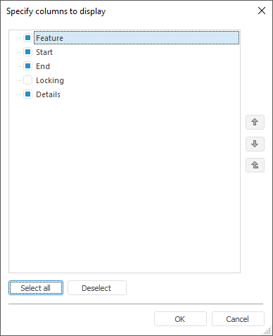 NOTE. It is impossible to deselect checkbox next to the Feature column and change column order. The checkbox next to the Locking column is deselected by default, to display the column, select the checkbox.