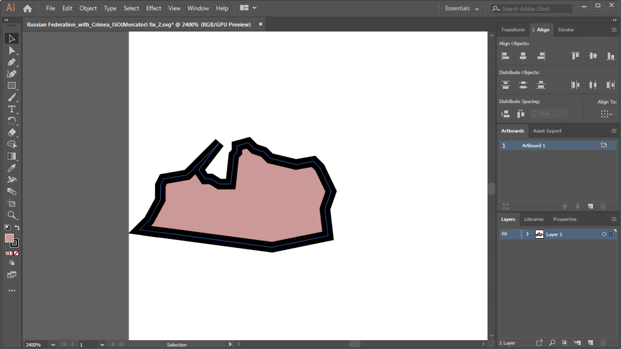 To determine exact coordinates of territory borders, prepare an SVG topobase in any vector graphics editor. Consider an example of preparing an SVG topobase in Adobe Illustrator: