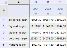 Ascending and descending ranking is not available for data table. Ranking can be applied by rows, by columns and for entire table.