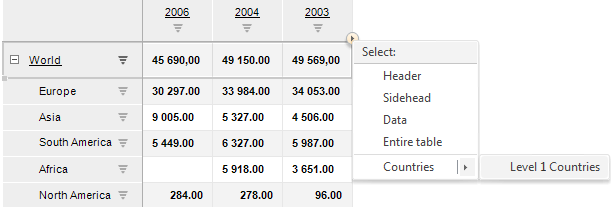 Select a range including the cell from the data table heading or sidehead, where hierarchical dimension elements are located. Click the