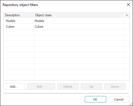 All Objects. When this filter is used, all repository objects are available.