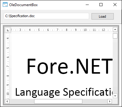 To load any COM object in the component use the CreateFromFile or CreateObject method. Loading from files is supported for the Microsoft Word and the Microsoft Excel files. The loaded object can be accessed using the OleObject property. Further work with the object is done by methods of the Variant class.