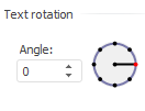 Select required text rotation angle in the Angle box (in degrees). To set the angle value, use values between -180° and 180°. Text is always rotated from the standard text position in the cell (rotation angle is 0°), regardless of its actual position at the moment of rotation. If the angle value is positive, text is rotated counter-clockwise (left image); if the value is negative, it is rotated clockwise (right image):