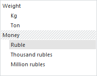 The Analytical Queries (OLAP) and Reports tools enable the user to set measurement units for the whole express report sheet or regular report slice. After selecting the unit used to display data, the scale of the selected unit is applied to all data of the sheet or slice.