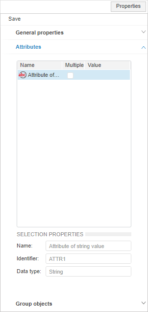 The Attributes tab provides a possibility to edit or add an attribute value:
