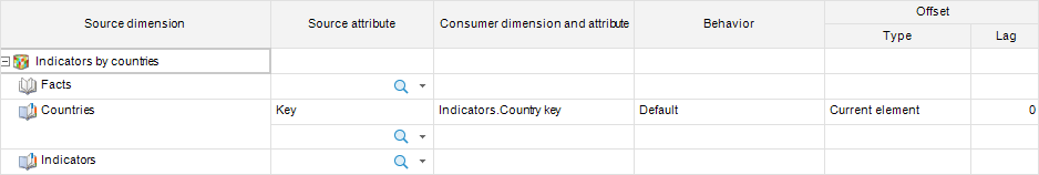 A link is set up between the Key attribute in the Countries dimension and the Country Key attribute in the Indicators dimension: