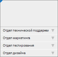. When the entire work or its part are entered, the list displays the elements, which names contain the searched character combination:
