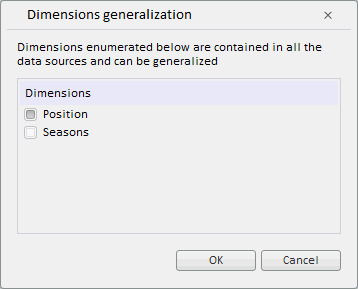 The CommonizeDimDilog component implements settings for moving private dimensions to shared ones.