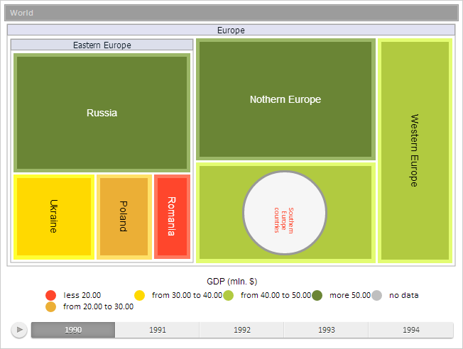 To execute the example the HTML page must contain the TreeMap component named (see Example of Creating the TreeMap Component). Create the Southern Europe Countries label on the tree map canvas: